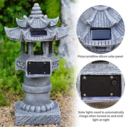 Infuse your outdoor space with timeless elegance using this 12-inch Japanese Pagoda Solar Lantern. Designed to mimic traditional stone craftsmanship, this resin-made piece is a charming blend of form and function—ideal for gardens, patios, balconies, and porches.