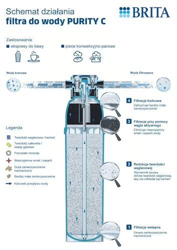 Furthermore, the advanced filter medium binds heavy metal ions like lead and copper, and significantly reduces turbidity, organic and taste-disturbing impurities, and chlorine residues in both the filtrate and blended water. Typical applications for the Brita Purity C 150 cartridges include automatic coffee and espresso machines, hot and cold beverage dispensers, and combination steamers and ovens.
