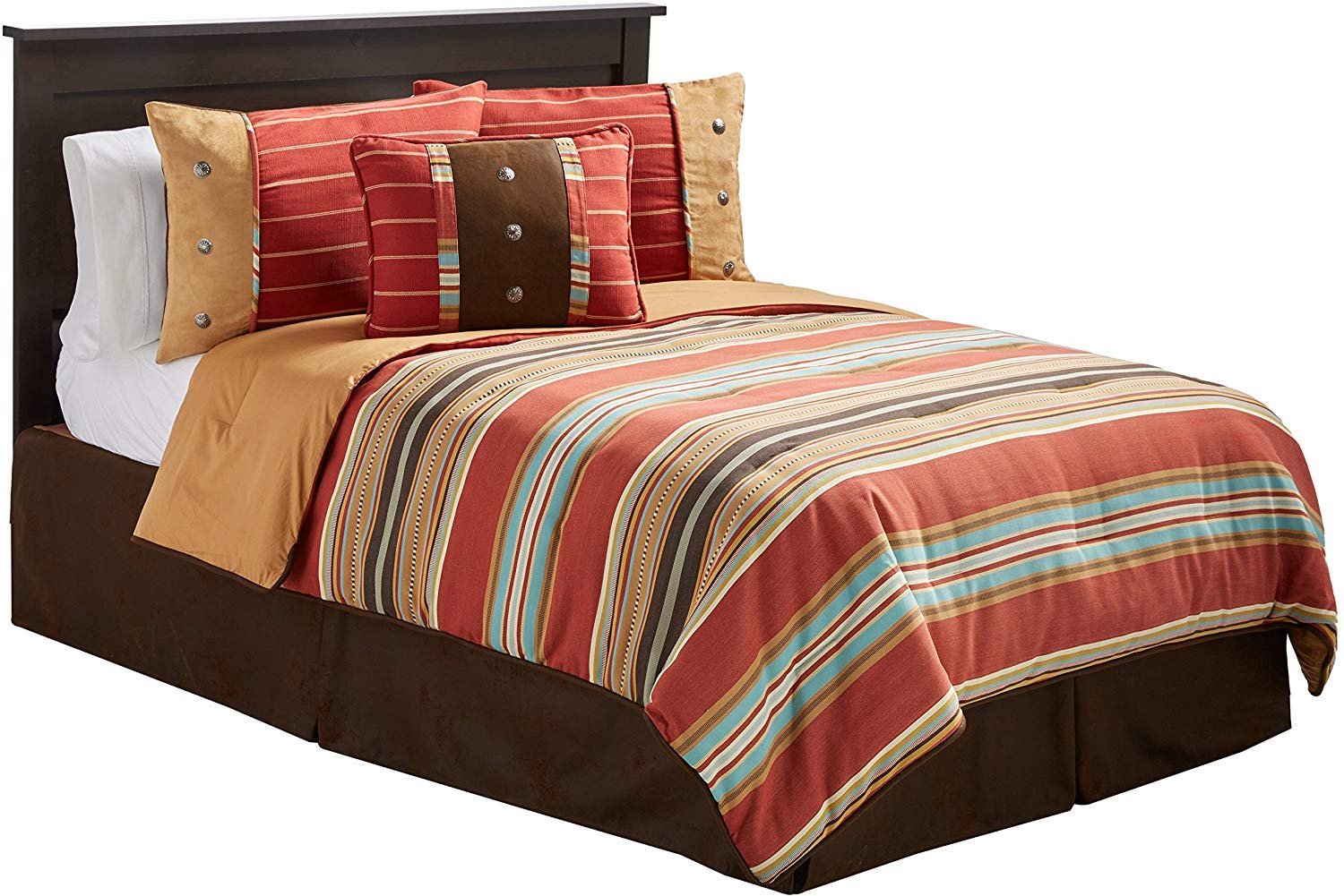 Capture the vibrant hues of the Mojave Desert with Calhoun. Colorful shades brighten up the room with horizontal serape stripes, traditional Western accouterments, and cozy accents. Complete the look with accessory pillows.