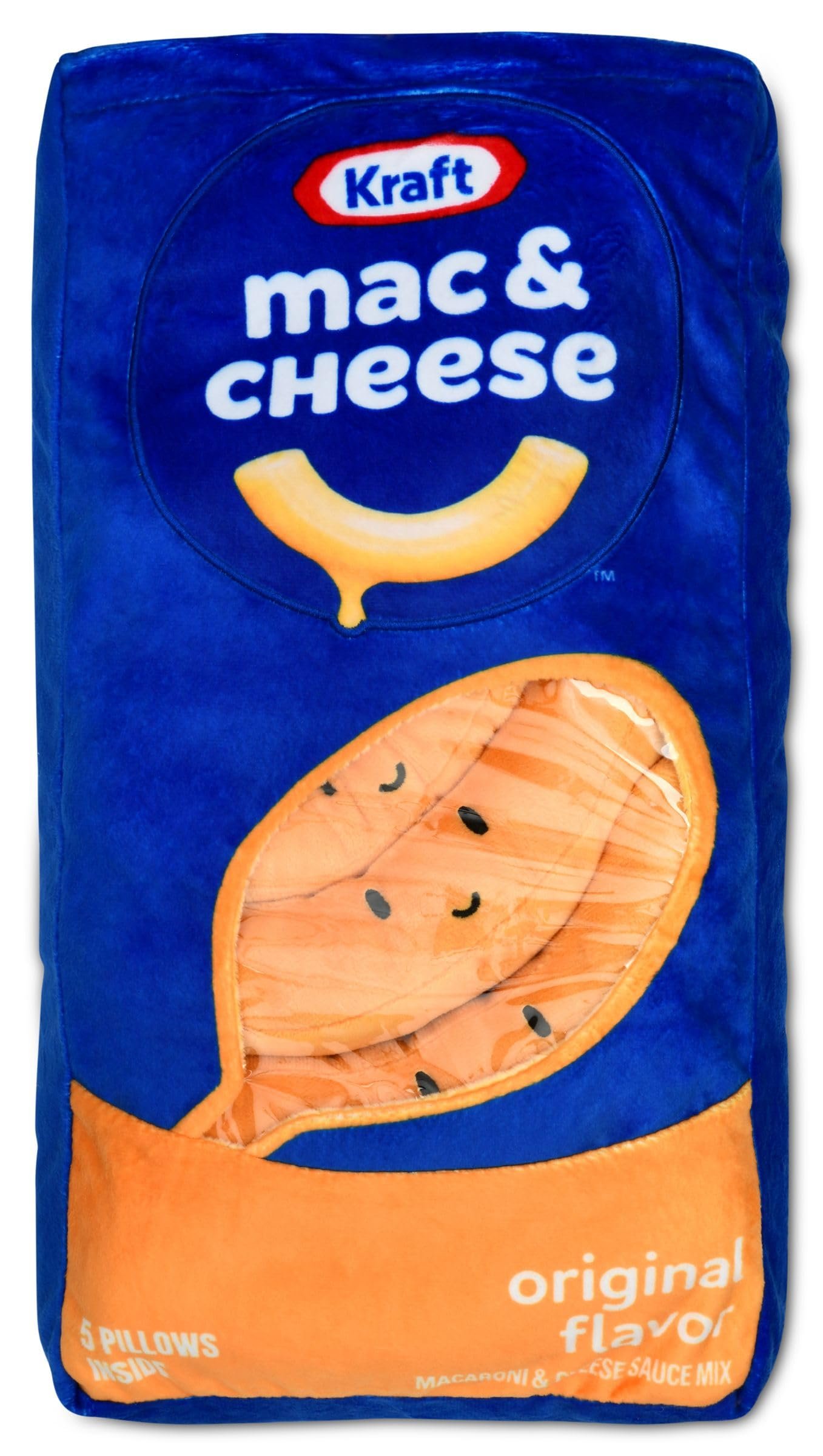 There’s always room for a fun, bright, cool, crazy throw pillow – especially when it’s as fun as this big ‘box’ of officially licensed Kraft Macaroni & Cheese buddies! This full-color, officially licensed pillow is comprised of a fleece zipper closure bag with a clear window in the front to show the four smiling macaroni buddies inside! And it isn’t just fun to look at – these softies are all filled with 100% polyester fiberfill so they are never lumpy or bumpy! The perfect combination of colorful fun, to-die-for design, quintessential quality, and cozy comfort – just what you expect from iscream!