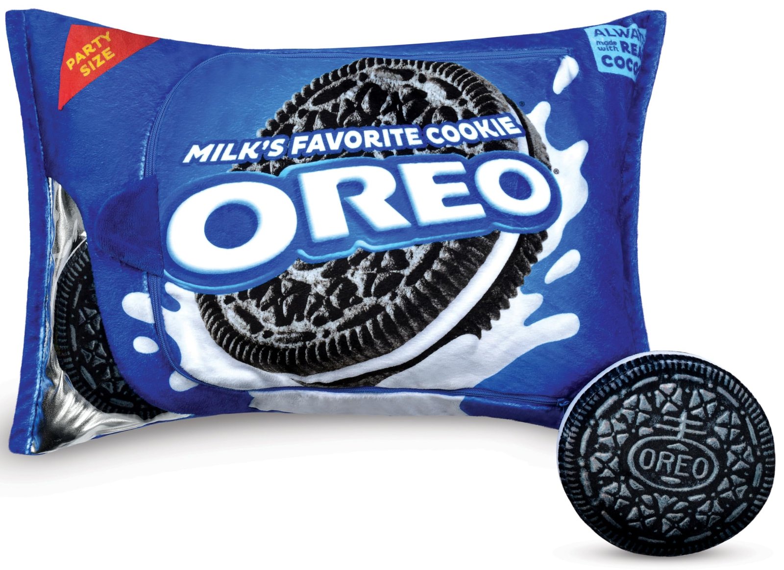 Experience the joy of this delightful pillow set featuring a fleece zipper closure bag with a clear window showcasing five Oreo cookie shaped mini pillows. Filled with high-quality polyester fiberfill, these soft pillows offer unmatched comfort. Measuring 18″ wide x 12″ high x 5″ deep, this pillow set is both visually appealing and cozy. Perfect for those who appreciate fun, function, and style!