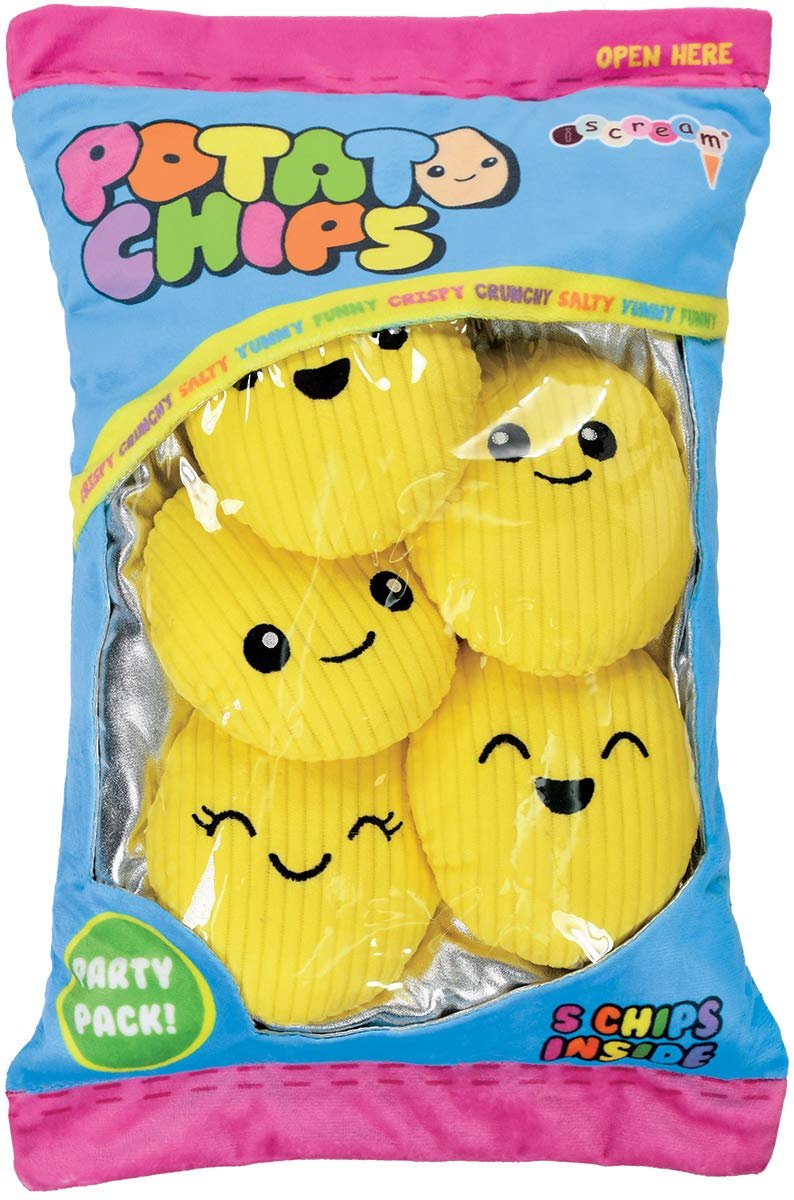 Experience the whimsical charm of the iscream Play with Your Food! Potato Chip Fleece Play Pillow Set with Embroidered Accents. This colorful fleece pillow resembles a zipper closure bag, showcasing five adorable potato chip mini pillows through a clear front window. Filled with 100% polyester fiberfill for ultimate comfort, these softies promise a delightful and cozy experience. Discover the perfect blend of vibrant design, premium quality, and playful comfort that defines iscream’s signature style!