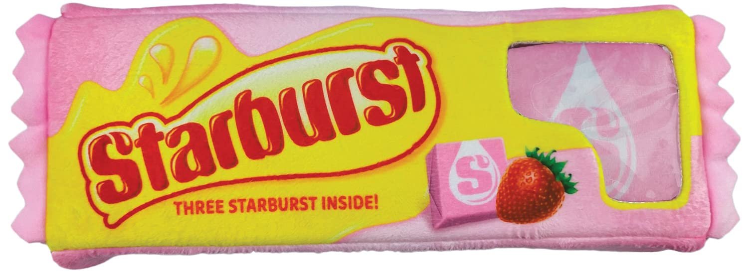 There’s always room for one more fun, bright, cool, crazy throw pillow – especially when it’s as fun as this big ‘package’ of sweet candy treats! This full-color, officially licensed pillow is comprised of a fleece hook and loop closure bag with a clear window in the front to show the three strawberry pink Starburst shaped pillows inside! And it isn’t just fun to look at – these softies are filled with 100% polyester fiberfill so they are never lumpy or bumpy! The perfect combination of colorful fun, to-die-for design, quintessential quality and cozy comfort – just what you expect from iscream!