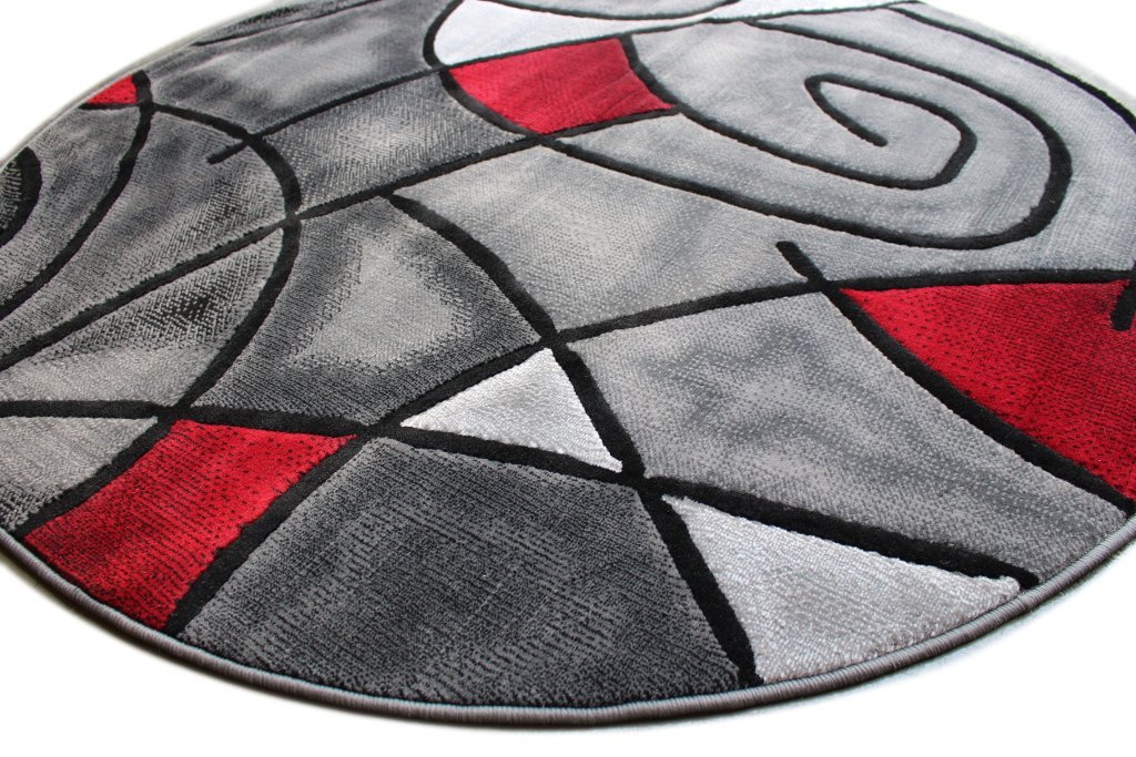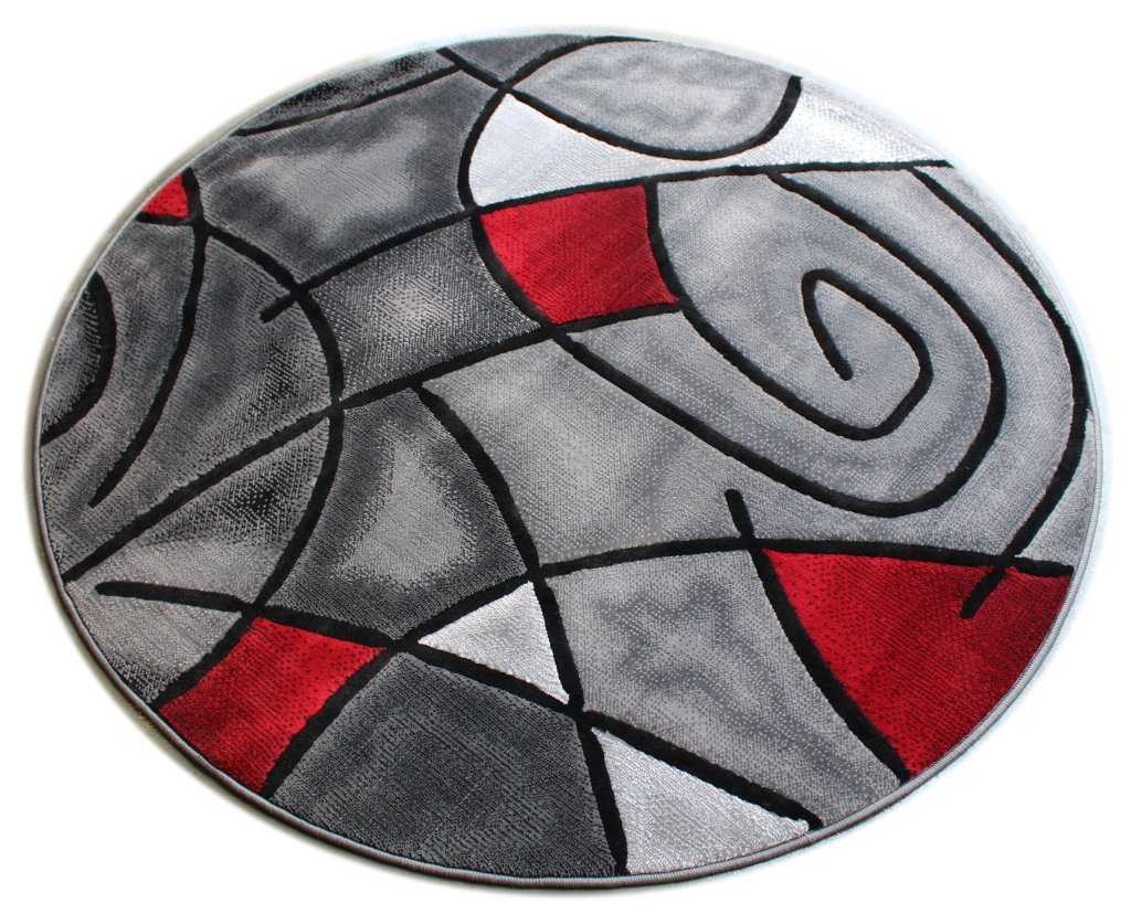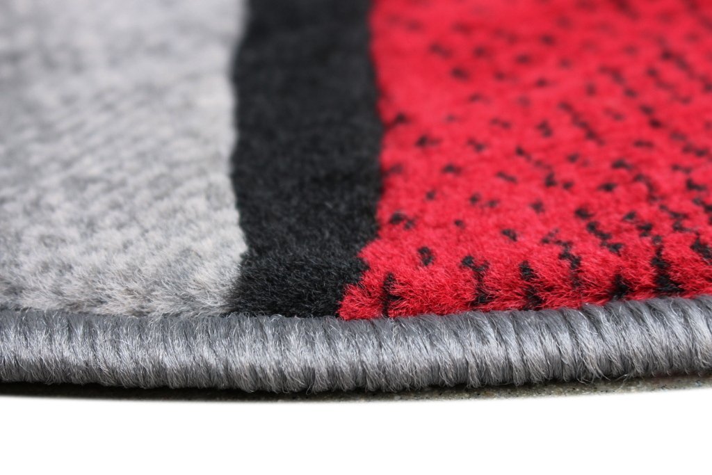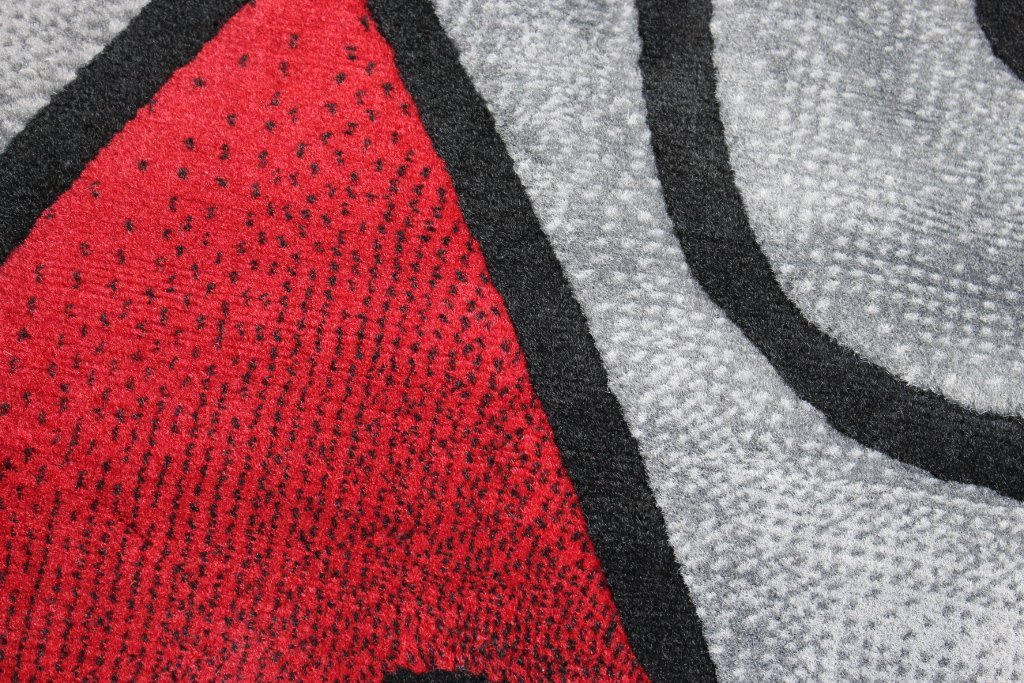 - Feature: High Quality Area Rug – Abstract design in red and grey.