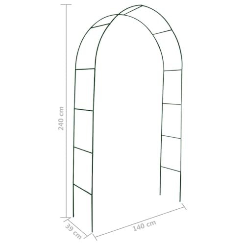 This set of two high-quality garden arches is a perfect choice for roses and climbing plants, making them a stunning eye-catcher in any garden, patio, or terrace. Crafted from durable, weather-resistant iron, these garden arches are robust enough to support even the most vigorous climbing plants. Each arch boasts a width of 1.4 meters and a height of 2.4 meters. You can also adjust the depth to which each arch is buried into the ground for optimal stability. These garden arches are designed for easy installation and mounting. A set of two arches is included in the delivery. Dimensions: 140 x 39 x 240 cm (W x D x H). Material: Iron. Colour: Dark green. Two pieces included.