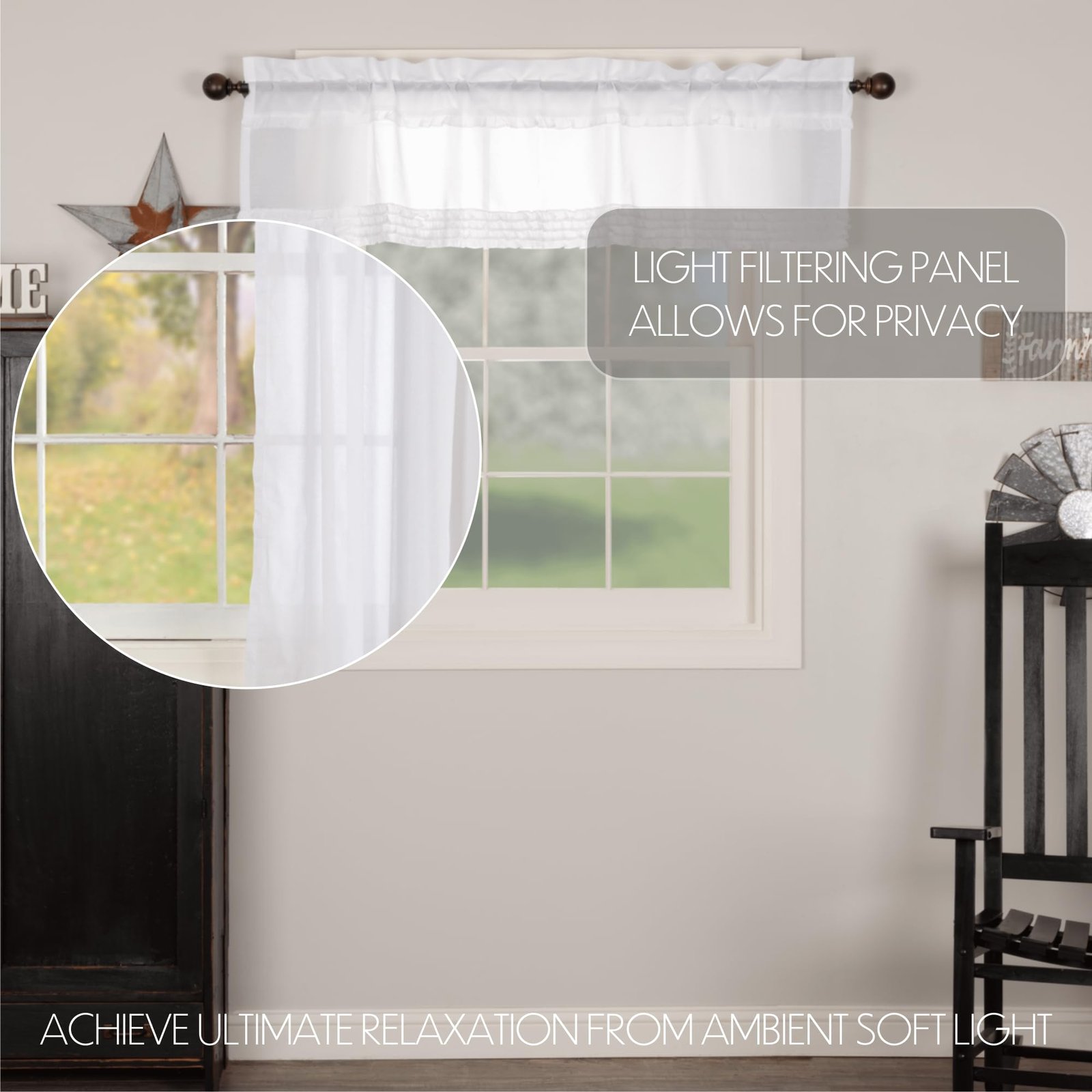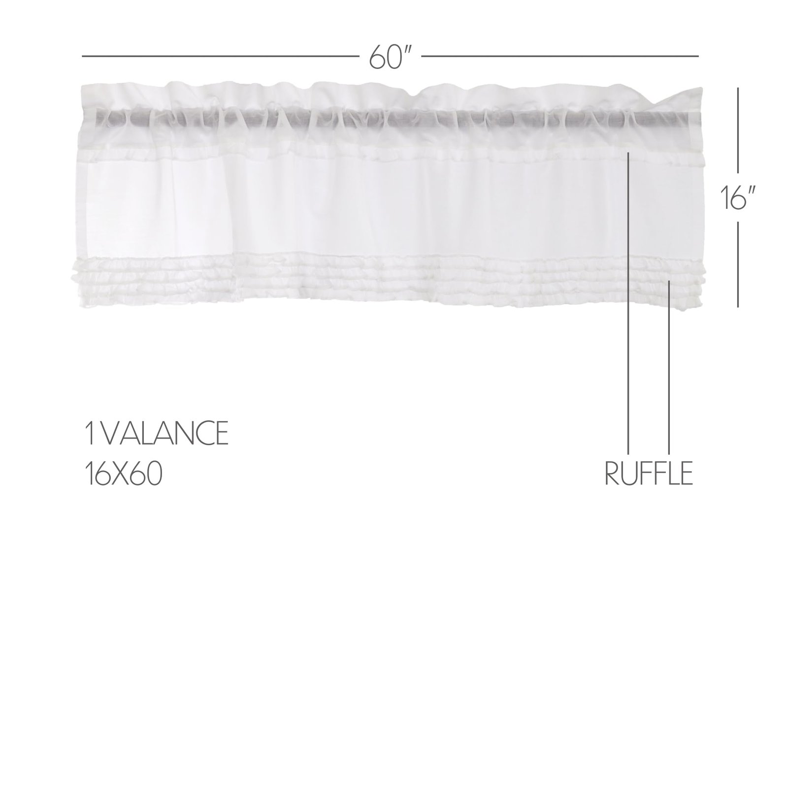 The White Ruffled Sheer Valance focuses on lightweight design for a vintage farmhouse look. This 16×60 valance features a thin layer of ruffling and a rod pocket for easy hanging. With impeccable workmanship, this curtain is soft, classy, and suits various decor styles.