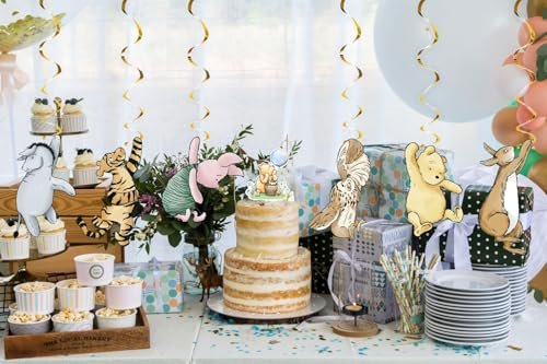 Premium Quality: Featuring radiant golden spiral designs that perfectly complement any celebration, the Pooh cutouts are crafted from sturdy cardstock with vibrant, double-sided printing for lasting appeal.