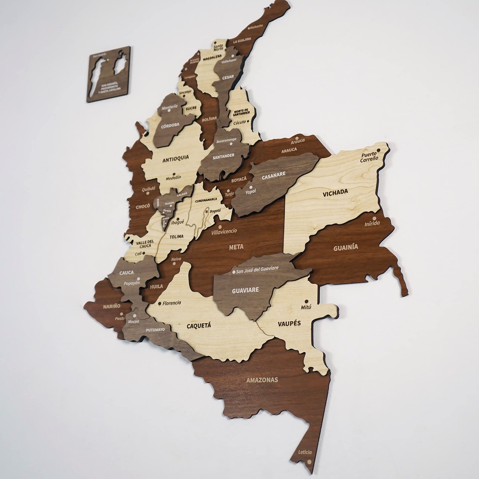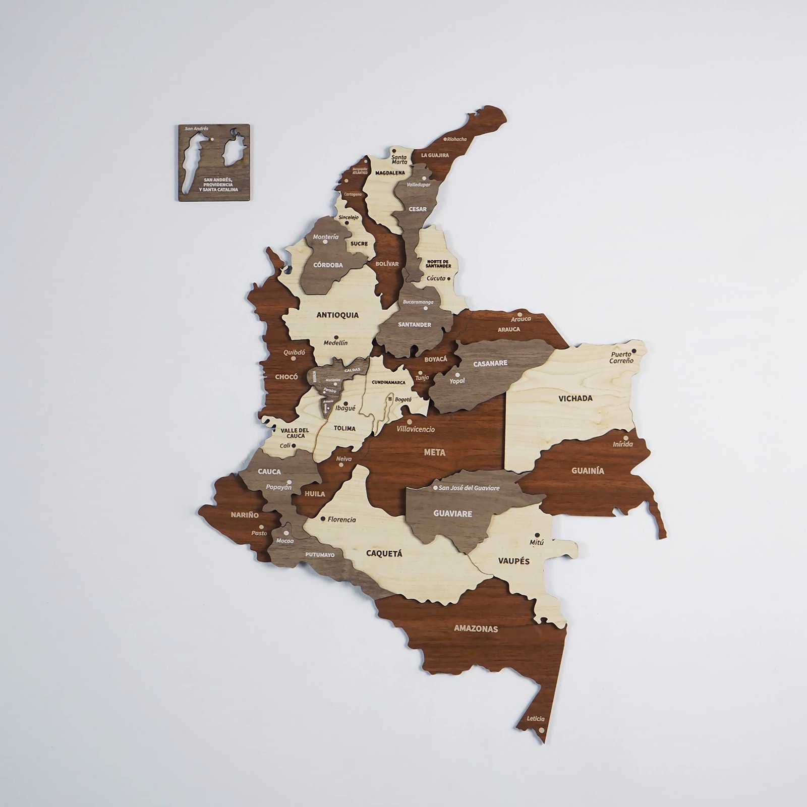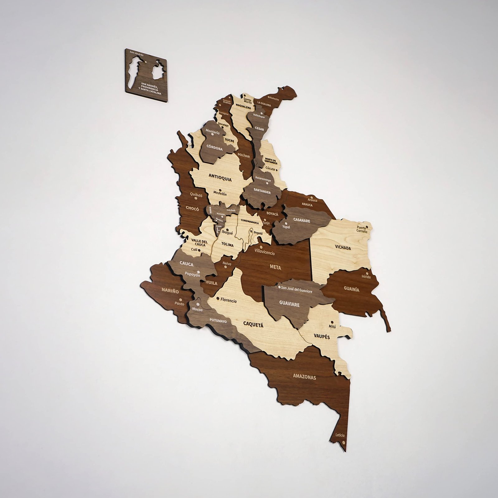 Adorn your walls with our multilayered wooden Colombia map. Install with ease for a stunning visual impact. Perfect for homes, offices, or as a gift for travelers.